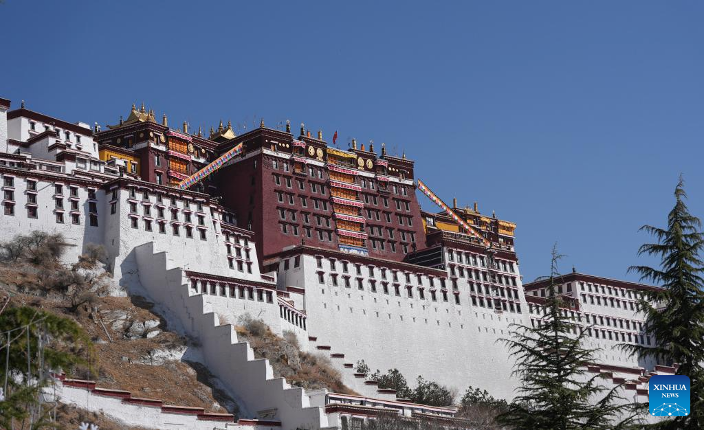 The newly decorated Potala Palace is pictured in Lhasa, southwest China's Xizang Autonomous Region, Feb. 28, 2025. Southwest China's Xizang Autonomous Region on Friday welcomed the first day of the Tibetan New Year with a flurry of festive foods, holiday greetings and traditional customs. (Xinhua/Jigme Dorje)