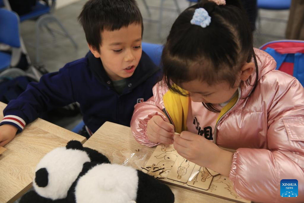 A boy and a girl solve a jigsaw puzzle at the Malta Chinese School in Luqa, Malta, on March 2, 2025. A Chinese cultural event held on Sunday at the Malta Chinese School offered students an immersive experience of "ancient Xi'an," one of China's most historic cities. The event, co-hosted by the China Cultural Center in Malta and the Malta Chinese School, showcased Xi'an's deep historical and cultural significance. With a history spanning more than 3,100 years, Xi'an served as the capital for 13 dynasties in Chinese history and is home to the renowned Terracotta Warriors, created during the Qin Dynasty (221-207 BC). (Xinhua/Chen Wenxian)