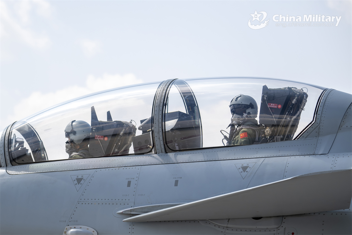 Pilots assigned to an aviation brigade with the air force under the Chinese PLA Southern Theater Command sit in the cockpit of a J-10 fighter jet during a round-the-clock flight training exercise in late February 2025. (eng.chinamil.com.cn/Photo by Xiao Rui)