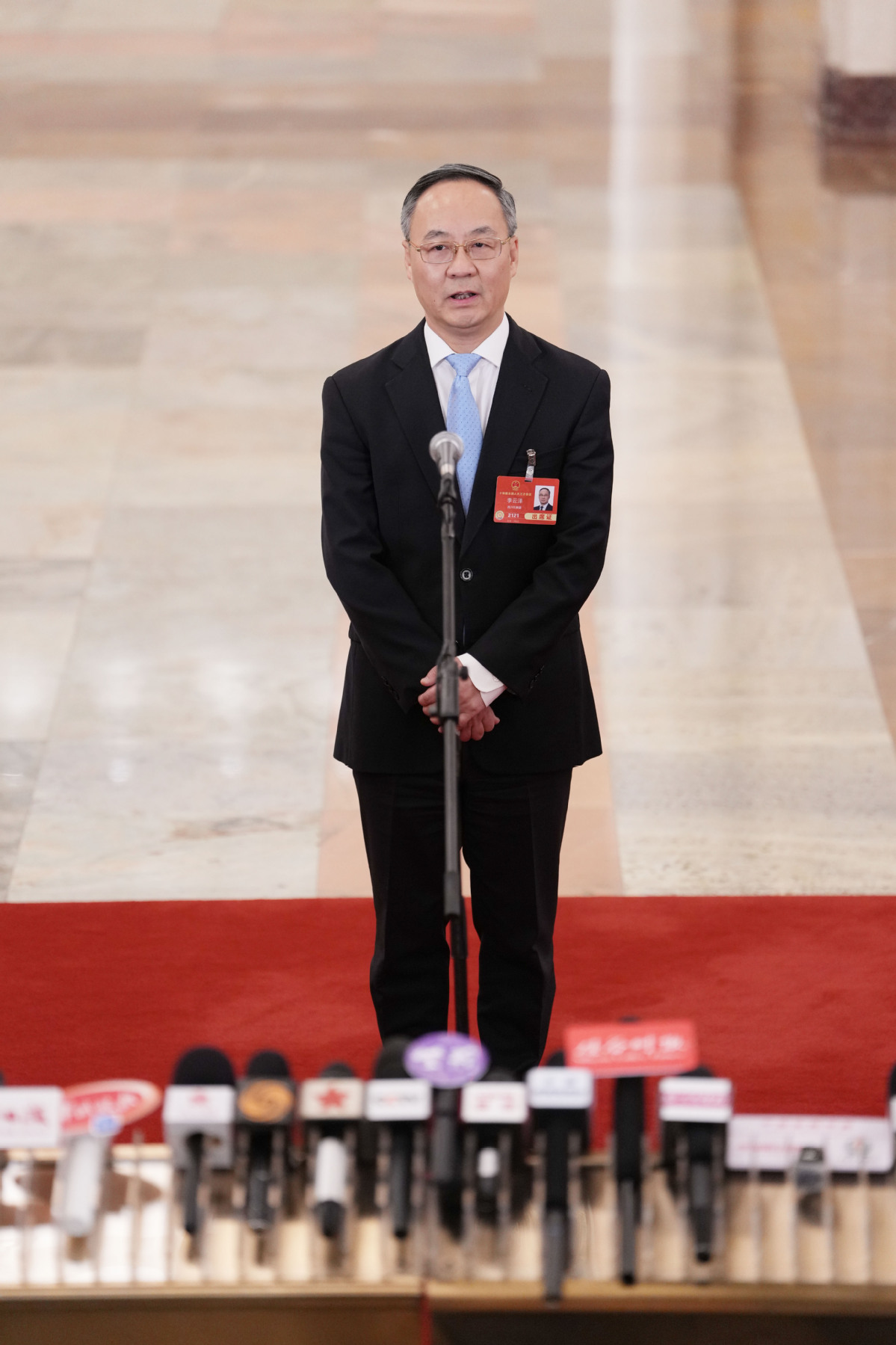 Li Yunze, head of the National Financial Regulatory Administration of China, gives an interview after the opening meeting of the third session of the 14th National People's Congress (NPC) at the Great Hall of the People in Beijing, capital of China, March 5, 2025. (Photo/Xinhua)