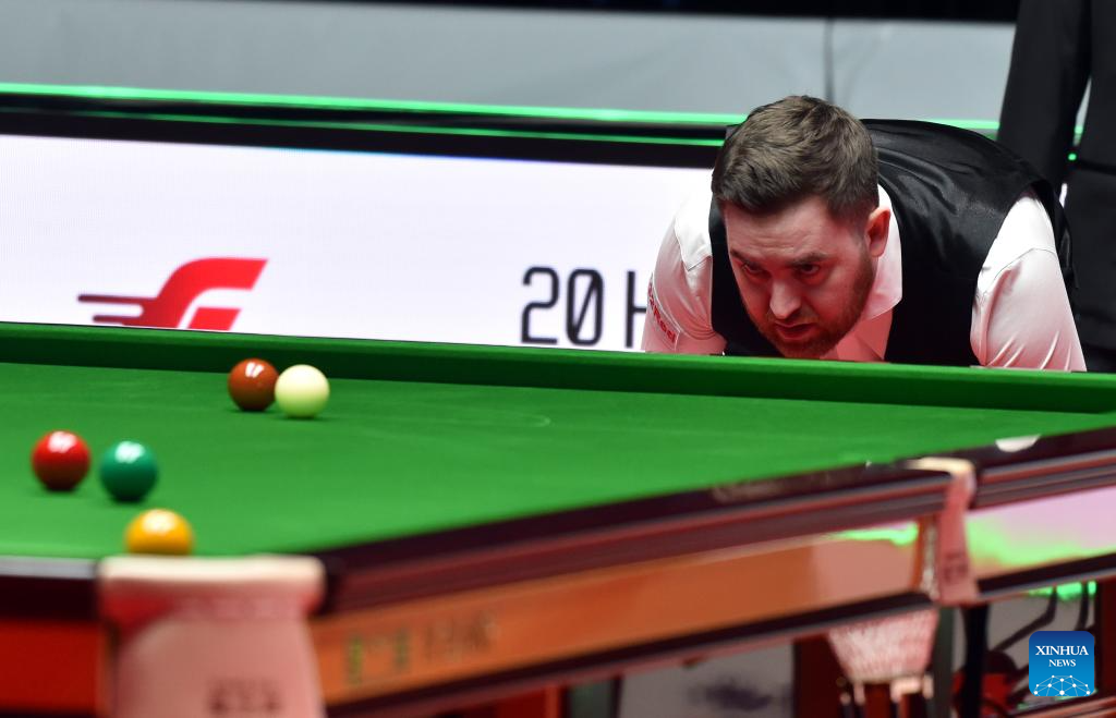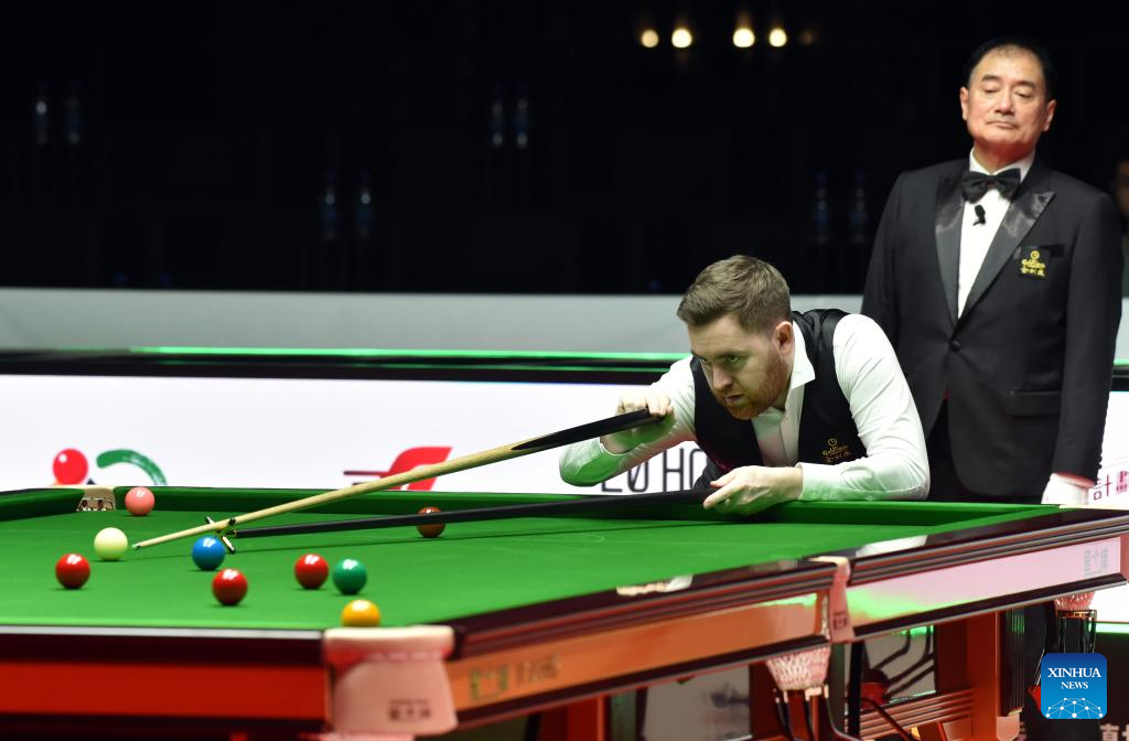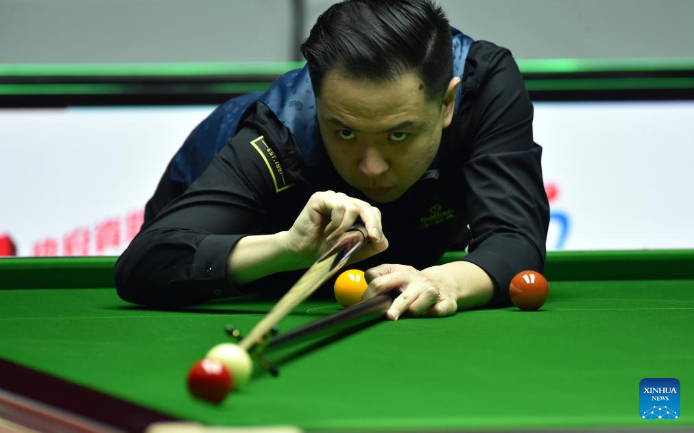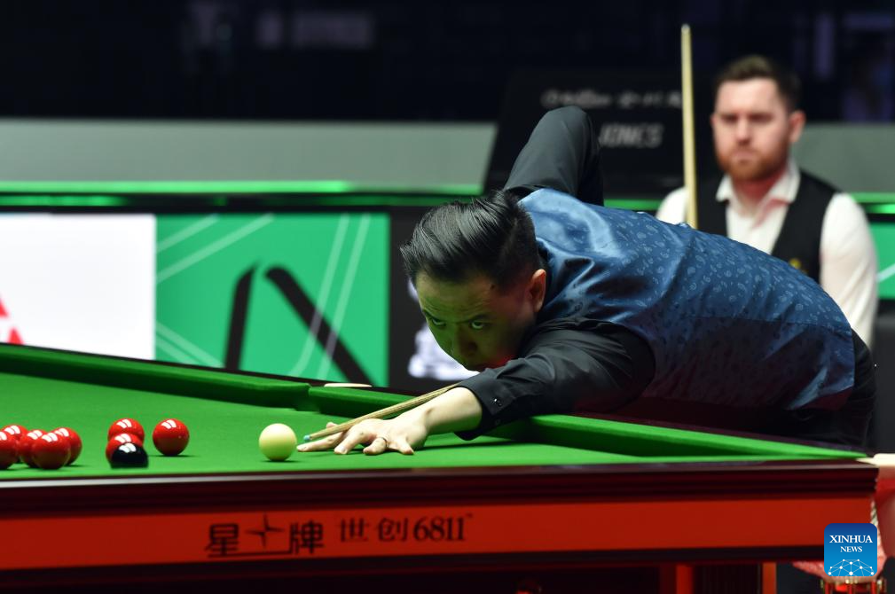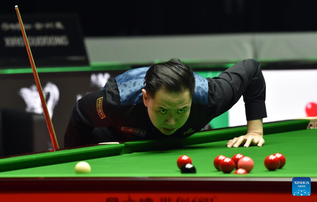 Xiao Guodong competes during the match between Jak Jones of Wales and Xiao Guodong of China at the Snooker World Grand Prix 2025 in Hong Kong, south China, on March 5, 2025. (Xinhua/Lo Ping Fai)