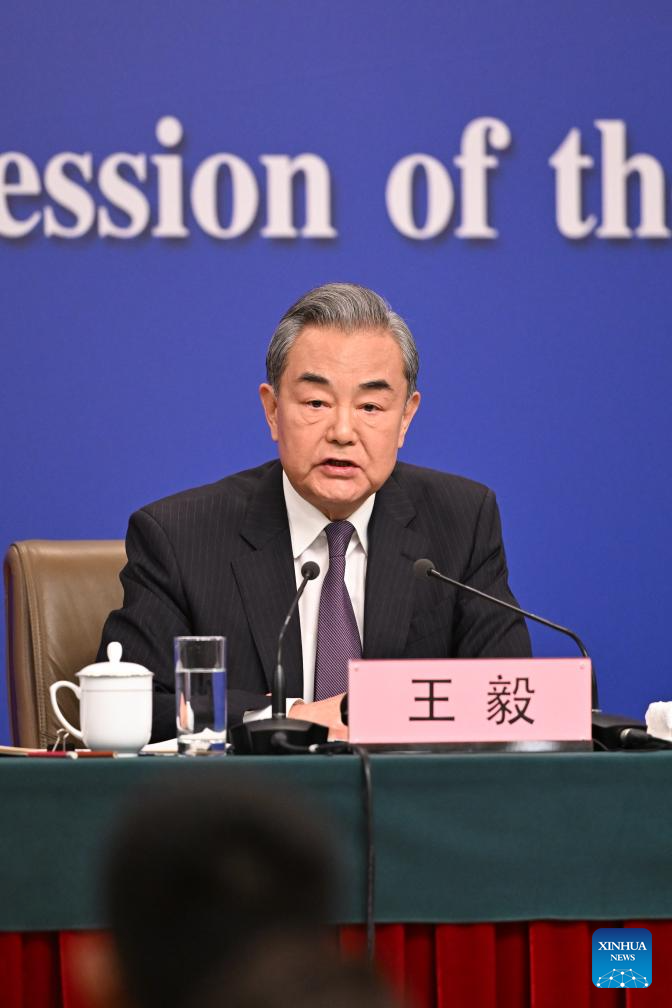 Chinese Foreign Minister Wang Yi, also a member of the Political Bureau of the Communist Party of China Central Committee, attends a press conference on China's foreign policy and external relations on the sidelines of the third session of the 14th National People's Congress (NPC) in Beijing, capital of China, March 7, 2025. (Xinhua/Liu Dawei)