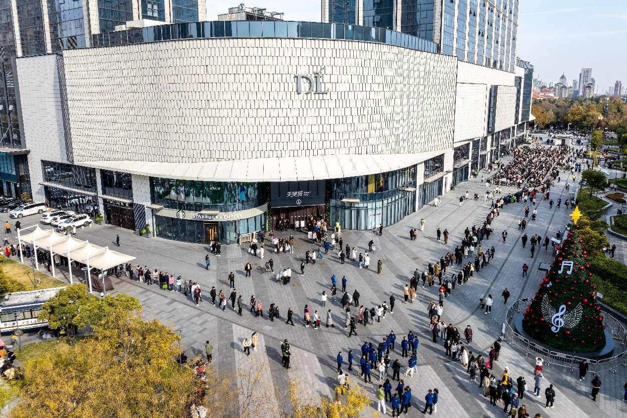 Consumers line up before a Pangdonglai supermarket in Xuchang, central China's Henan province, Dec. 8, 2024. (People's Daily Online/Wang Zirui)