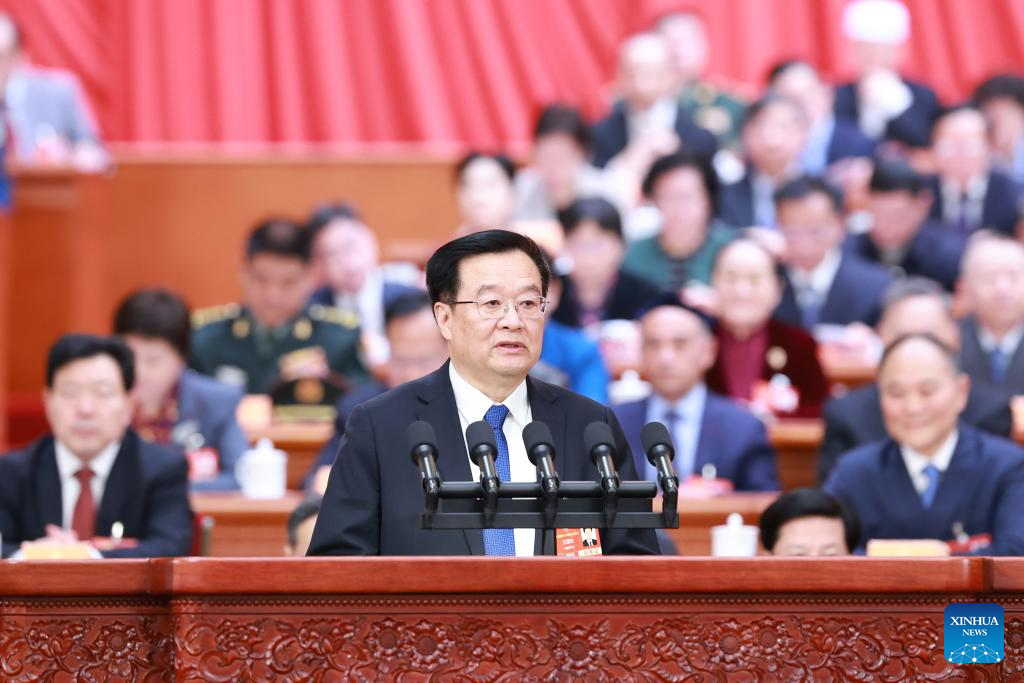 Wang Guosheng, a member of the 14th National Committee of the Chinese People's Political Consultative Conference (CPPCC), speaks at the second plenary meeting of the third session of the 14th CPPCC National Committee at the Great Hall of the People in Beijing, capital of China, March 7, 2025. (Xinhua/Wang Ye)
