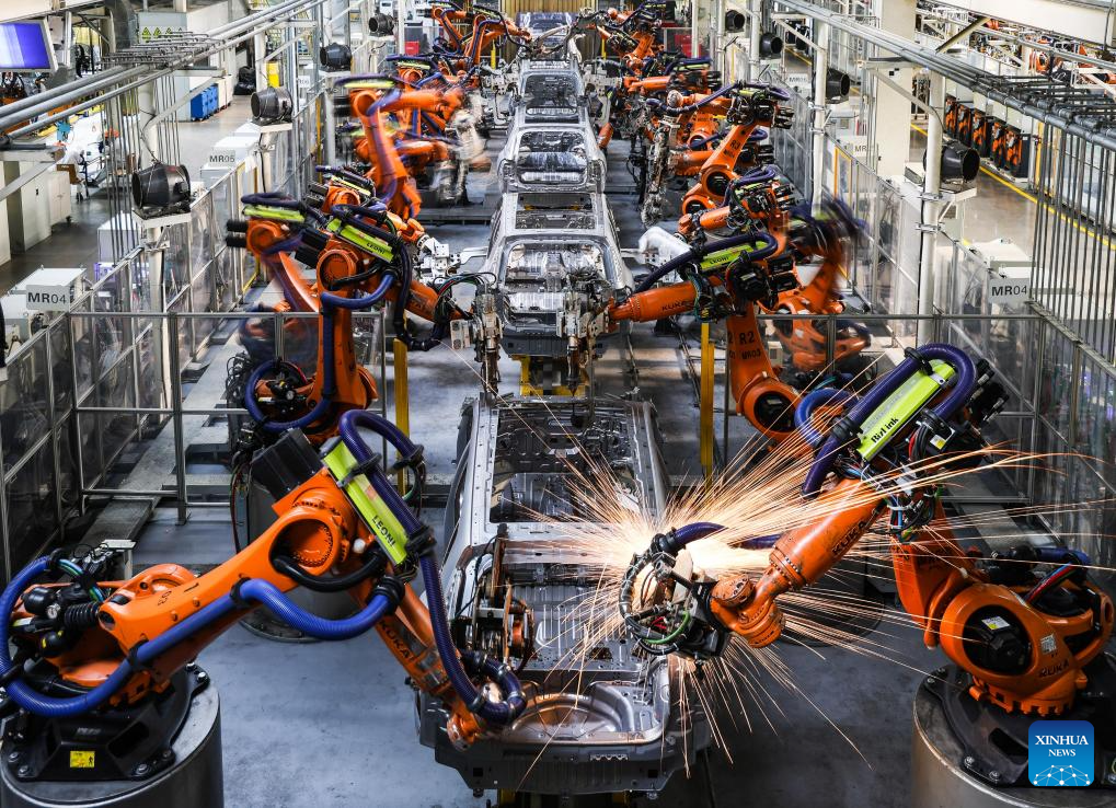 This photo shows an automobile production line of the GAC Group in Guangzhou, south China's Guangdong Province, Feb. 24, 2025.(Xinhua/Liu Dawei)