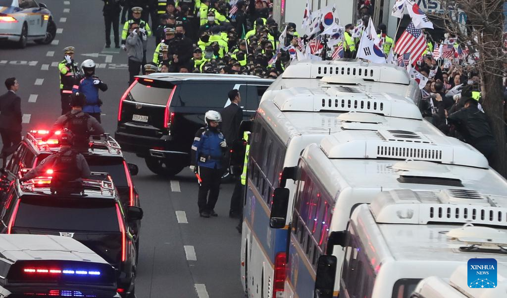 After arriving at the presidential residence in central Seoul, the impeached leader got off the vehicle again to shake hands with his supporters. (Xinhua/Yao Qilin)