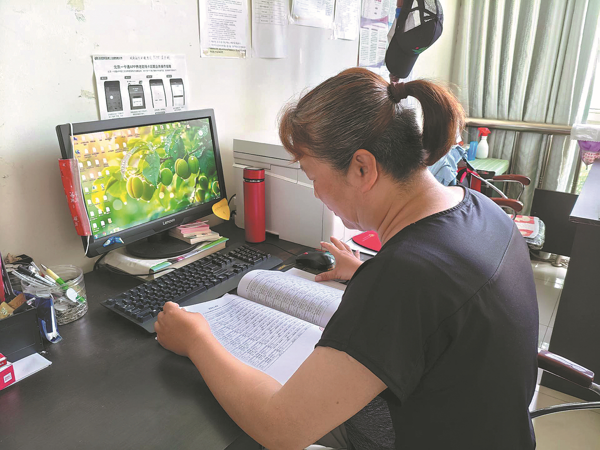 Sun Haili, 51, studies for her college course at her home in Beijing. CHINA DAILY
