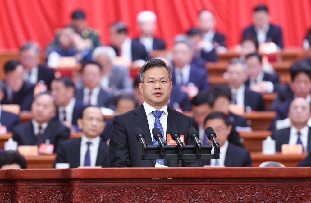 Su Hui presides over the third plenary meeting of the third session of the 14th National Committee of the Chinese People's Political Consultative Conference (CPPCC) at the Great Hall of the People in Beijing, capital of China, March 9, 2025. (Xinhua/Li Xueren)