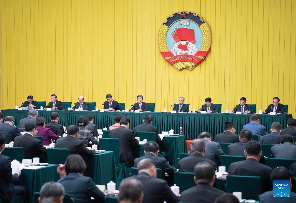 President of the China Economic and Social Council (CESC) Wang Dongfeng, also vice chairman and secretary-general of the National Committee of the Chinese People's Political Consultative Conference, attends a meeting of the CESC in Beijing, capital of China, March 10, 2025. (Xinhua/Li Tao)