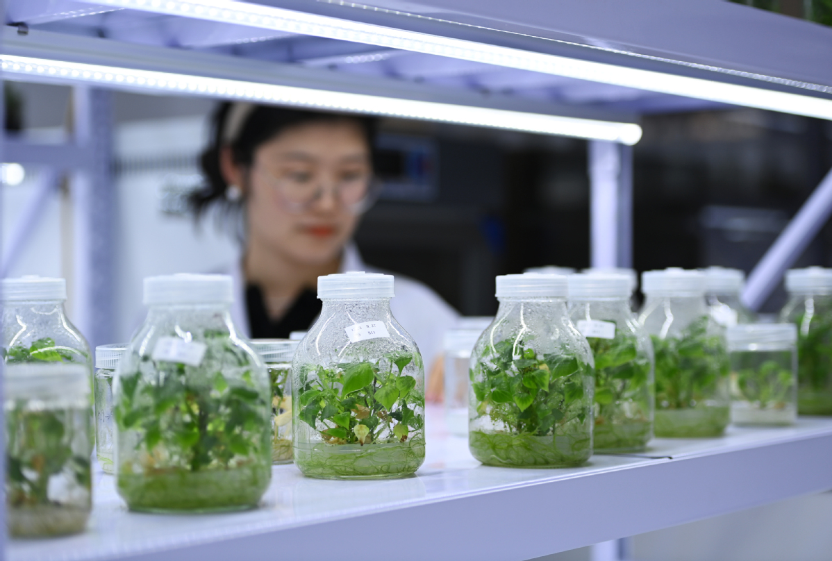 A Transfar employee works at a plant science research center in Hangzhou, Zhejiang province, in December. (Lu Zhe/Xinhua)