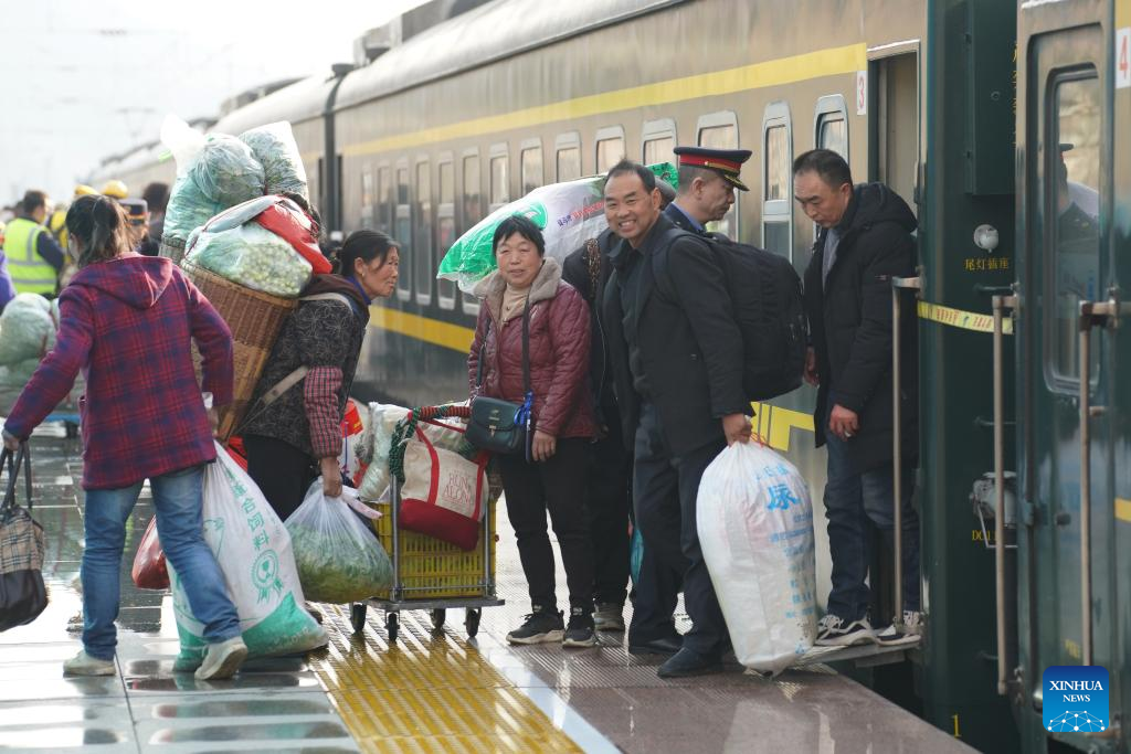 Onboard, Xiang has also seen the farmers' improving lives. "In the past, they'd bring dry buns to eat on the train and rarely bought new clothes," he recalled. "Now, they sell their produce and return home with bags full of groceries and goods. They're more willing to spend money on themselves."