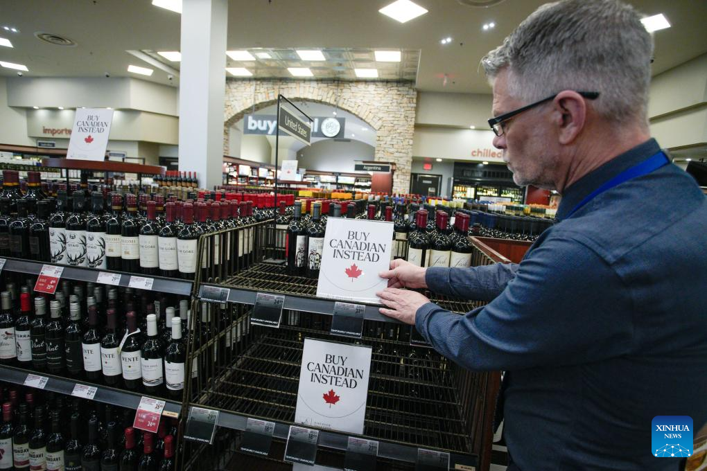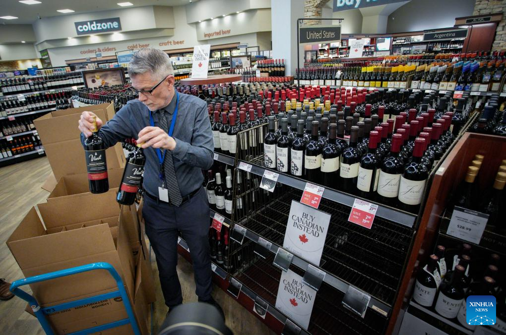 The provincial government of British Columbia announced on Monday its decision to remove U.S. alcohol products from the shelves of B.C. liquor stores operated by the B.C. Liquor Distribution Branch across the province, in response to tariffs and annexation threats from the United States. (Photo by Liang Sen/Xinhua)
