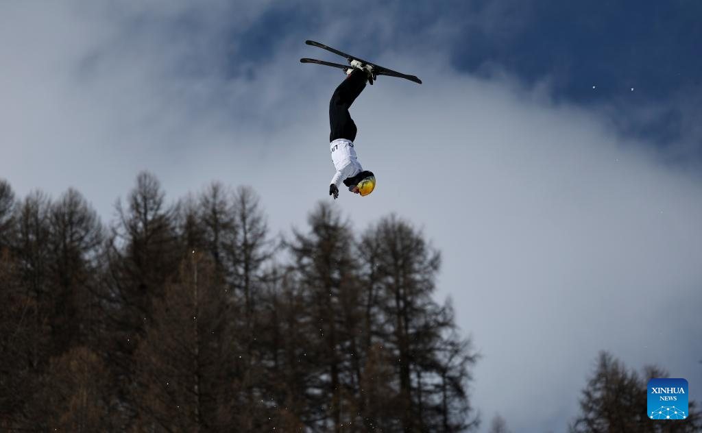 China's Qi Guangpu attends a practice session before the 2024-2025 FIS Freestyle Ski World Cup at the Livigno Aerials & Moguls Park, in Livigno, Italy, March 11, 2025. (Xinhua/Li Jing)