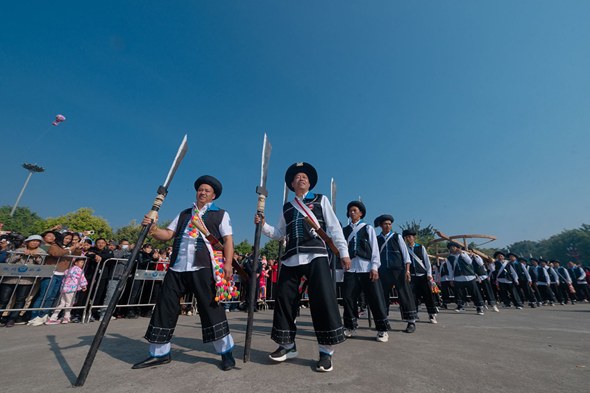 Recently, people of the Lisu ethnic group staged performances to celebrate the Kuoshi Festival, or the Lisu New Year, in Dehong Dai and Jingpo Autonomous Prefecture, southwest China's Yunnan Province. Among the many captivating performances, the thrilling and mysterious show called "ascending a mountain of blades and crossing a sea of flames" became the focus of attention.