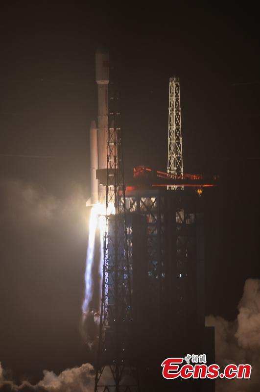 A Long March-8 Y6 carrier rocket carrying a group of 18 low Earth orbit satellites blasts off from the No. 1 launch pad of Hainan commercial spacecraft launch site in Wenchang, south China's Hainan Province, March 12, 2025. (China News Service/Luo Yunfei)