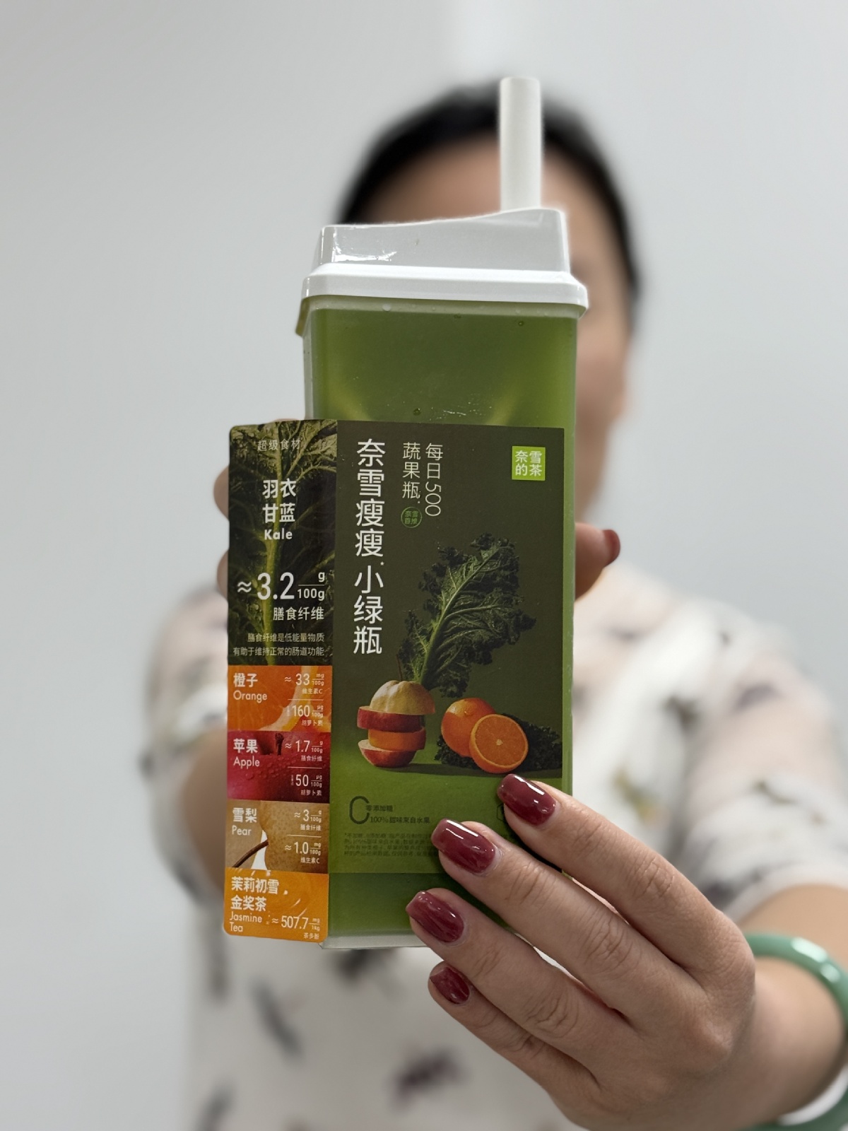 A juice containing kale sold by the tea chain Naixue. (Du Lianyi/China Daily)