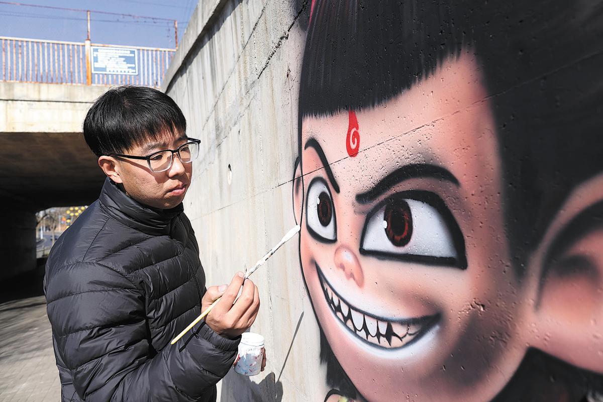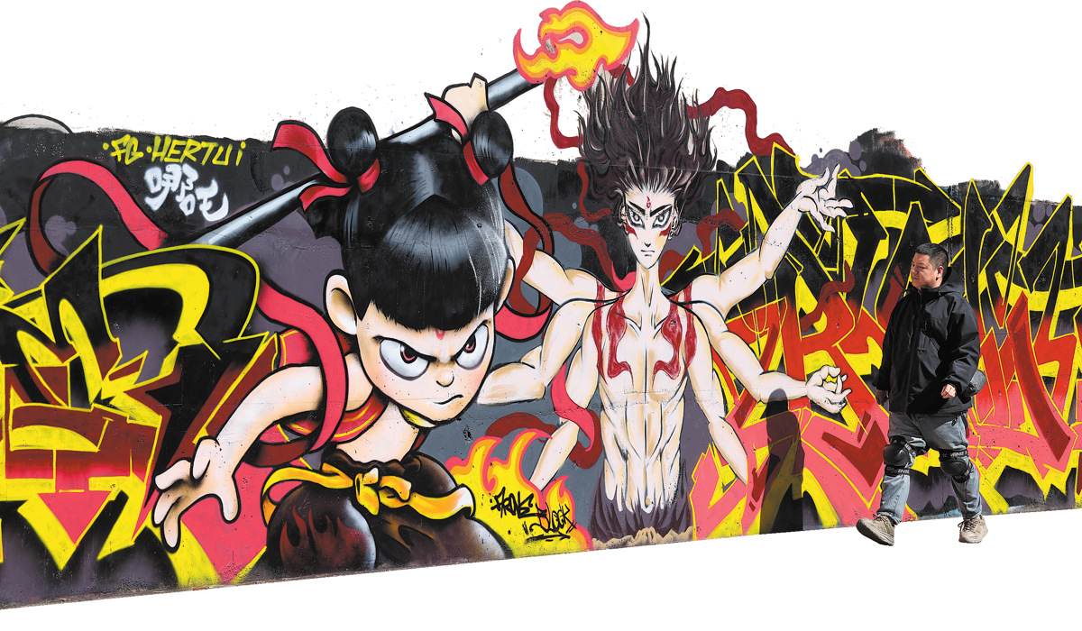 He told China Daily that he and his team worked from 8 am to 5 pm, overcoming many challenges, to present the 2.5-meter-high and 1-meter-wide image of Ne Zha in graffiti on a wall in an urban village in Gaoping.