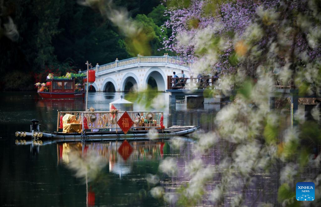 Tourists enjoy cherry blossoms at a botanic garden in Kunming, southwest China's Yunnan Province, on March 15, 2025. As the spring season is coming, flowers are in full bloom across the country. (Photo by Liang Zhiqiang/Xinhua)