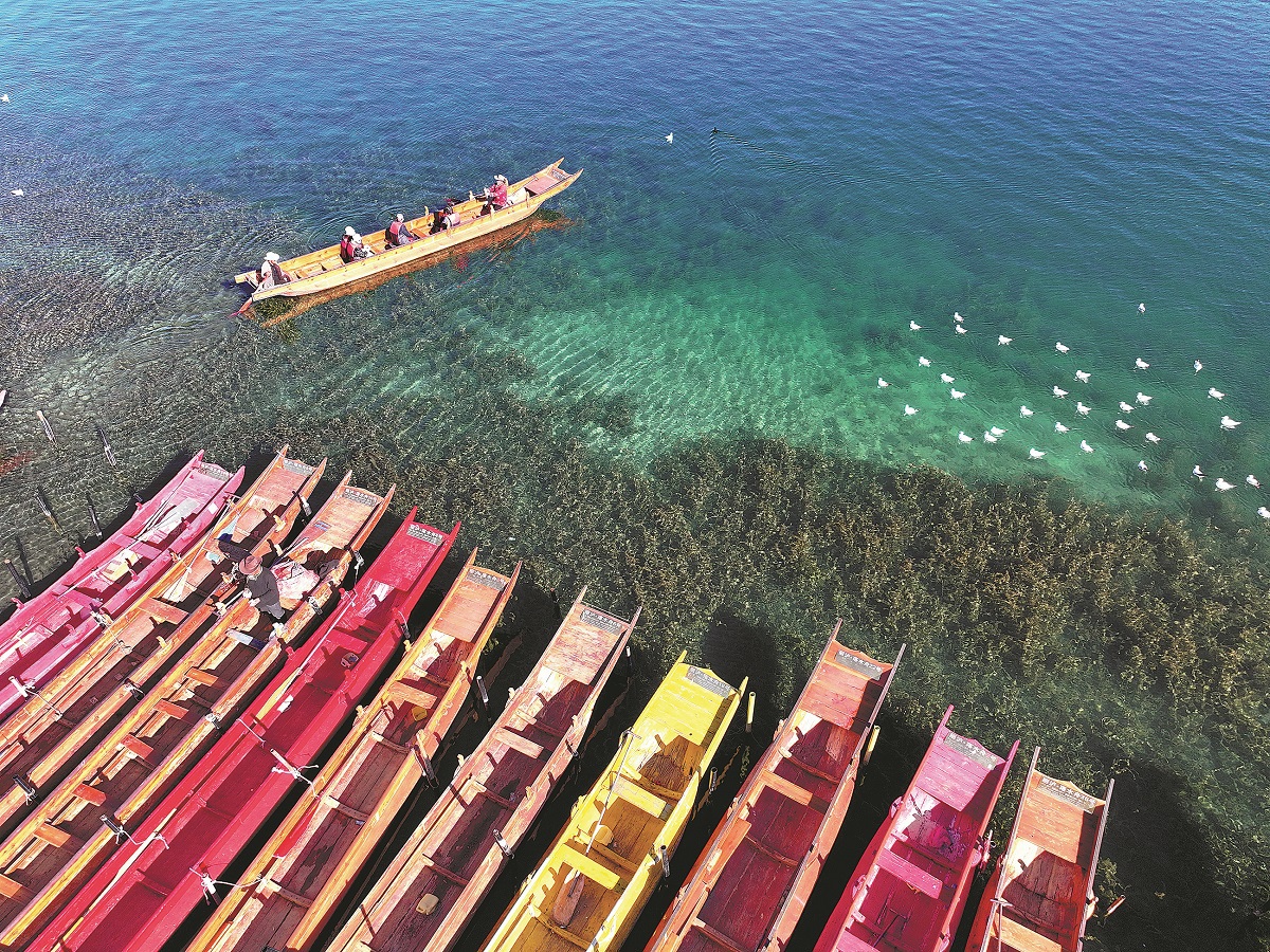 Tourists take a boat ride on Lugu Lake in Lijiang, Yunnan province, in December. (Gong Jinzu/Xinhua)