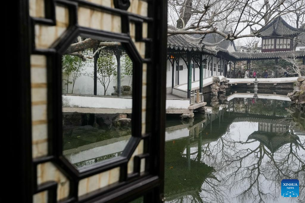 This photo shows the scenery of the Master-of-Nets Garden in Suzhou, east China's Jiangsu Province, Feb. 26, 2025.