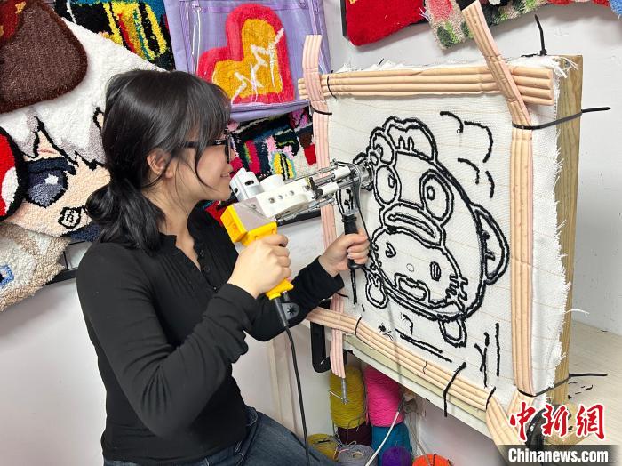 On weekends, the sound of tufting guns echoes through a craft workshop in Xi'an. Among the participants is 22-year-old Wang Ruyi, who's making a cartoon-themed rug. "I was worried I'd mess it up, but after a quick 10-minute demo from the staff, I was good to go. Watching the soft design come together is so satisfying," Wang Ruyi said.