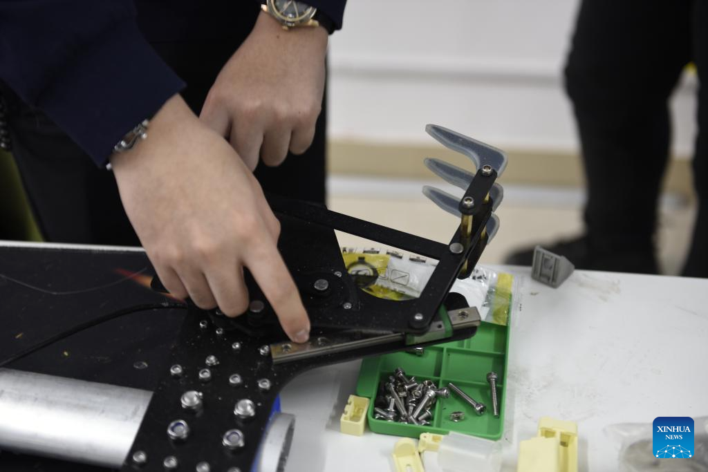 Chu Yichen assembles underwater bionic robotic gripper at Lindong Bionic technology co., ltd. in Shenyang, northeast China's Liaoning Province, March 18, 2025. (Xinhua/Wu Qinghao)