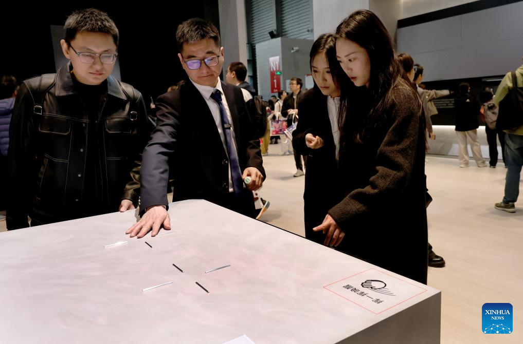 Visitors interact with an intelligent robot during the 2025 Appliance & Electronics World Expo (AWE2025) in east China's Shanghai, March 20, 2025. With the theme of "AI For All", the AWE2025 kicked off here on Thursday. More than a thousand enterprises from all over the world gathered at the expo to showcase their latest innovations. (Xinhua/Fang Zhe)