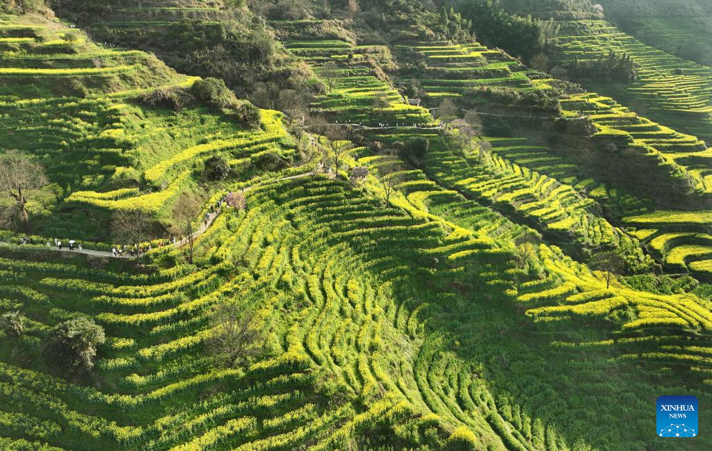 Blooming cole flowers are pictured in Yantian Village of Wuyuan County, east China's Jiangxi Province, March 20, 2025. (Xinhua/Wan Xiang)