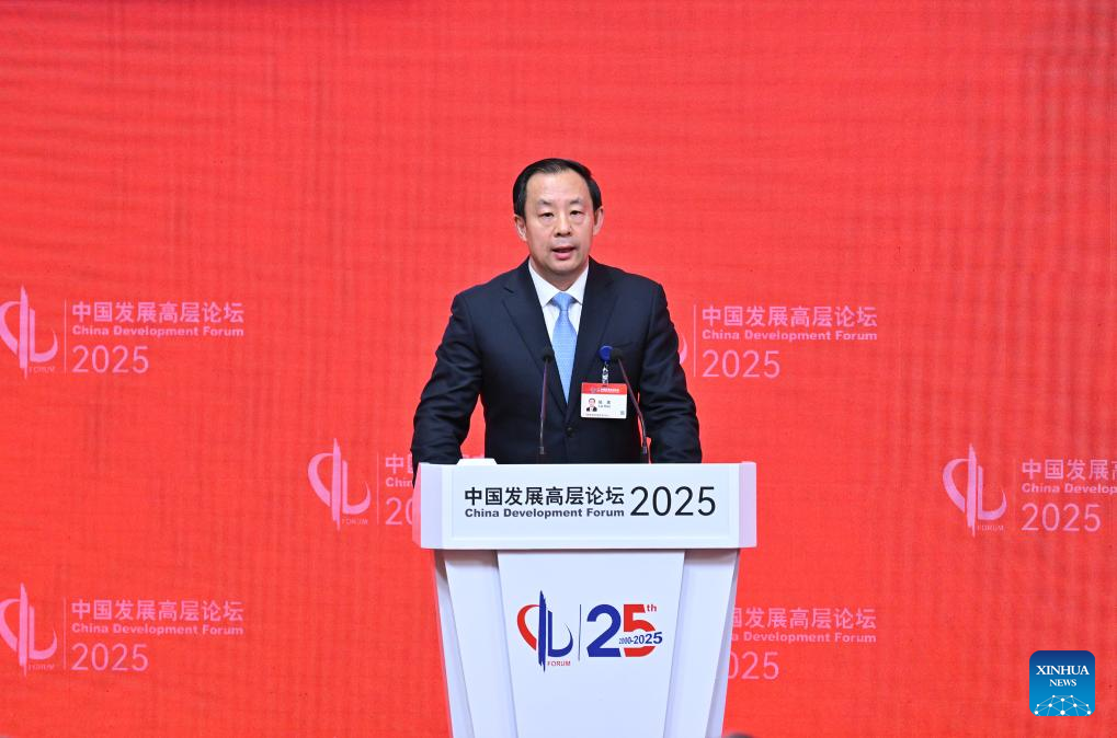 Lu Hao, chair of the China Development Forum (CDF) 2025 and director of the Development Research Center of the State council, presides over the opening ceremony of the CDF 2025 in Beijing, capital of China, March 23, 2025. The China Development Forum 2025 is scheduled from March 23 to 24. The theme of this year's forum is "Unleashing Development Momentum for Stable Growth of Global Economy." (Xinhua/Li Xin)