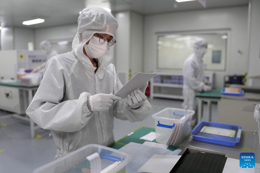 A technician works at an intelligent workshop of Konfoong Materials International Co., Ltd. in Yuyao, east China's Zhejiang Province, March 20, 2025. In recent years, Yuyao has been continuously strengthening the introduction and cultivation of integrated circuit enterprises and optimizing industrial layout. In 2024, the added value of the city's integrated circuit industry reached 3.048 billion yuan (about 420.5 million U.S. dollars), marking a year-on-year growth of 47.5 percent. (Xinhua/Huang Zongzhi)