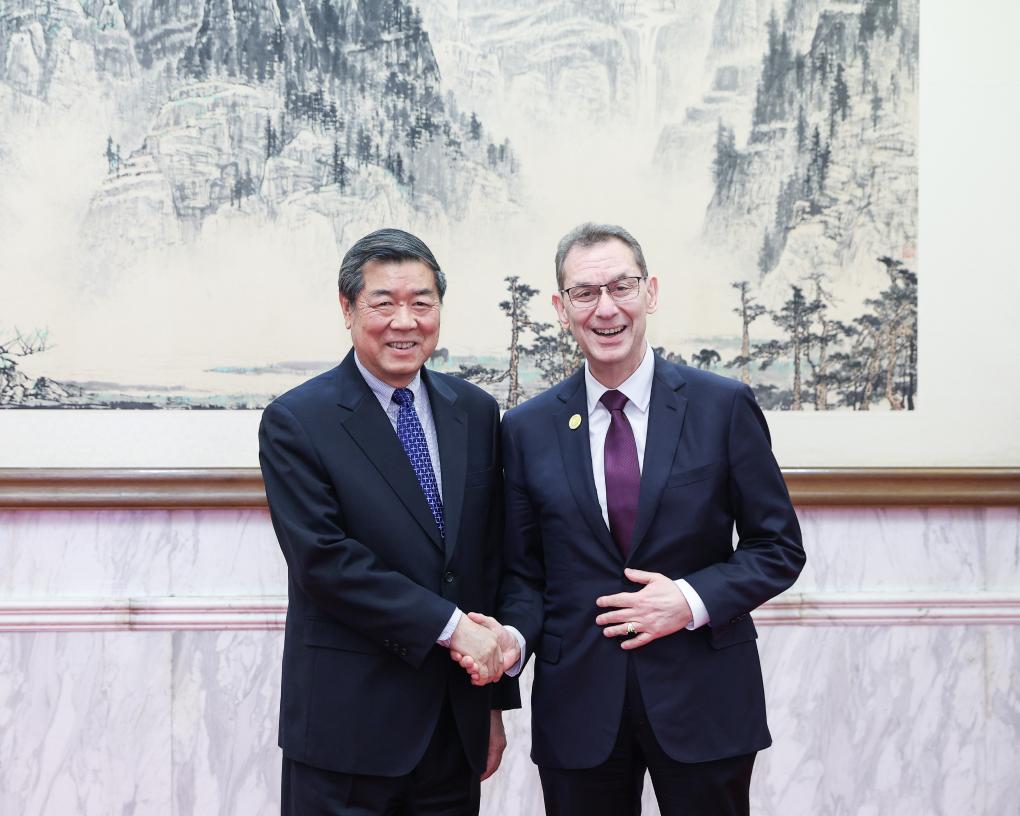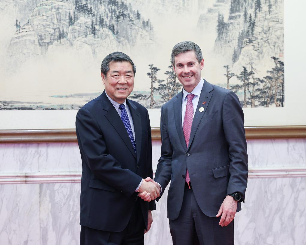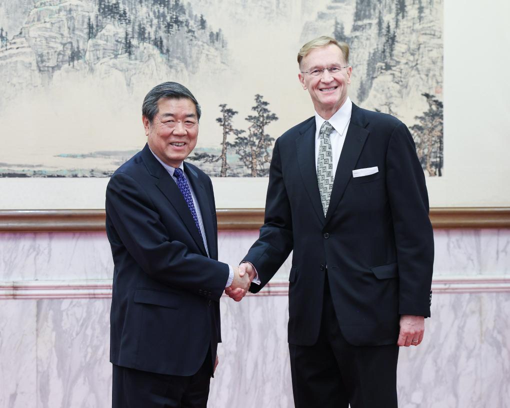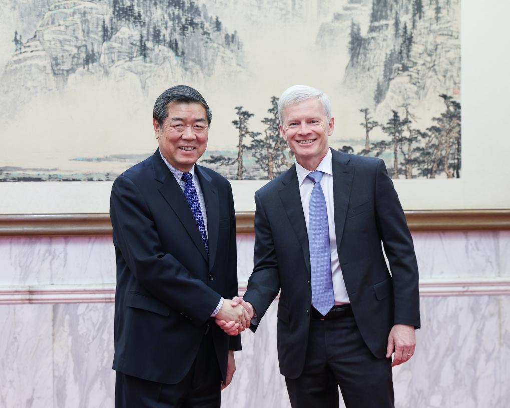 Chinese Vice Premier He Lifeng, also a member of the Political Bureau of the Communist Party of China Central Committee, meets with Brian Sikes, president and CEO of Cargill, in Beijing, capital of China, March 23, 2025. (Xinhua/Liu Bin)
