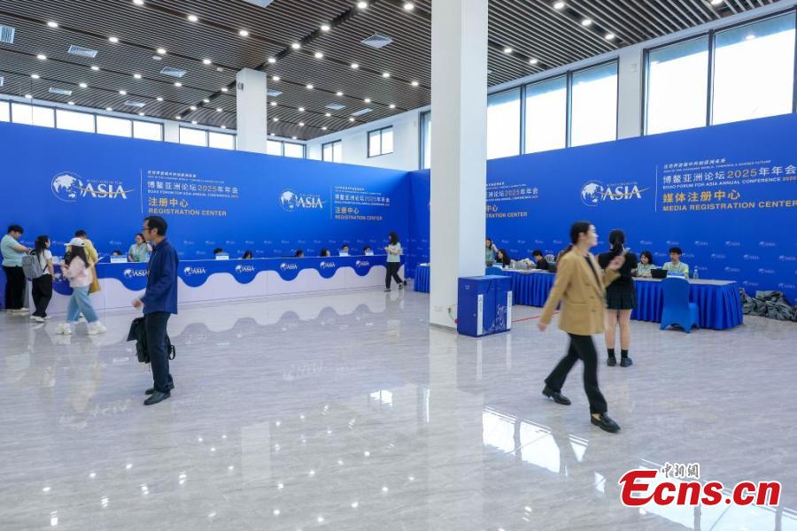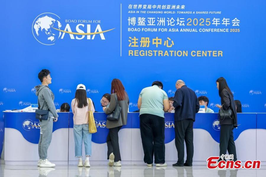 Participants register at the Registration Center for the 2025 Boao Forum in south China's Hainan Province, March 23, 2025. (China News Service/Luo Yunfei)