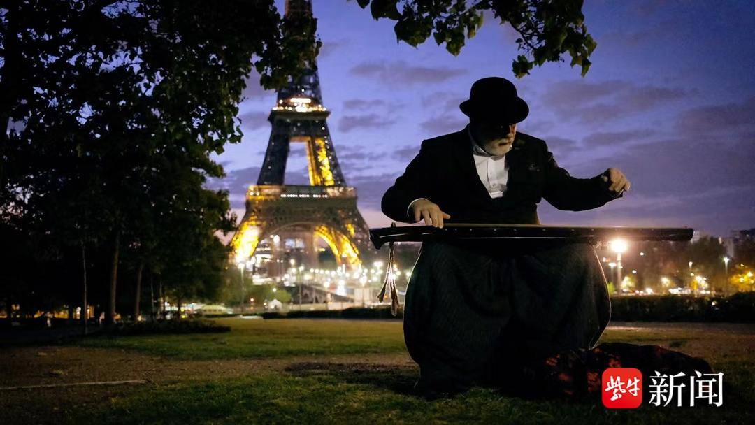Dominic Eckersley plays a Guqin on a street in Paris. (Photo/Yangtse Evening Post)