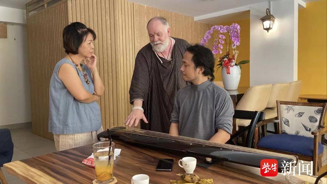 Dominic Eckersley talks about the Guqin with his friends. (Photo/Yangtse Evening Post)