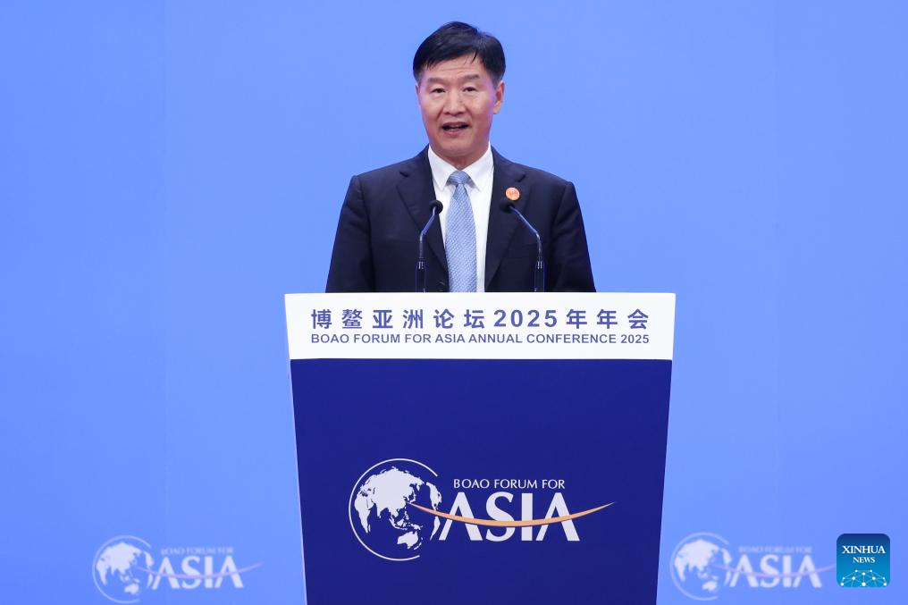 Liu Xiaoming, governor of Hainan Provincial People's Government, delivers a speech at a panel discussion themed on "Global Free Trade Port Development" during the Boao Forum for Asia (BFA) Annual Conference 2025 in Boao, south China's Hainan Province, March 25, 2025. (Xinhua/Zhang Liyun)