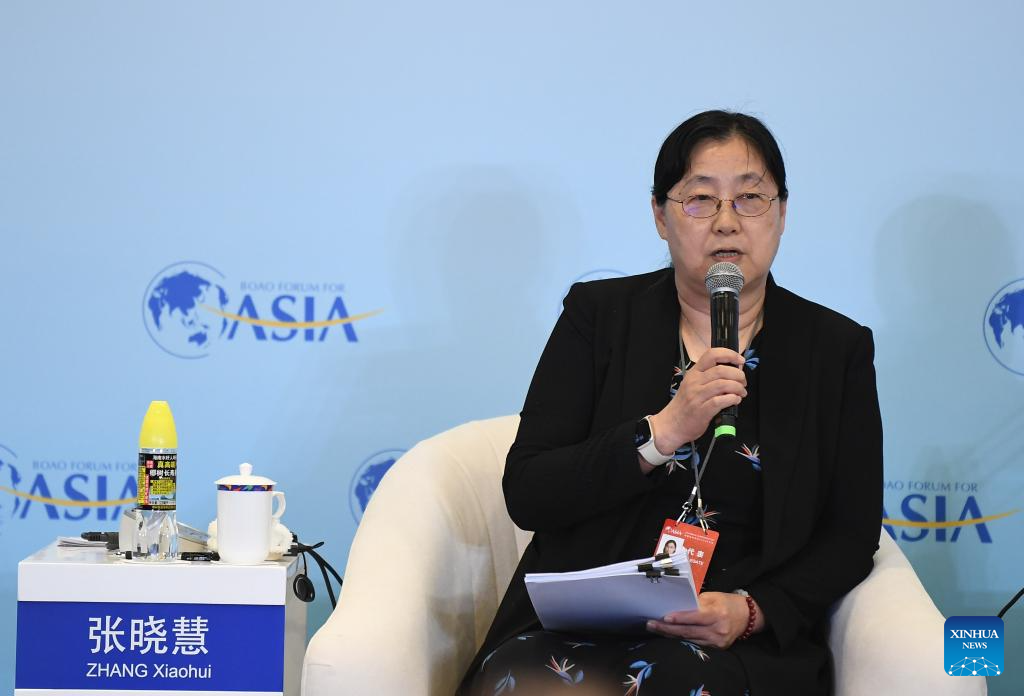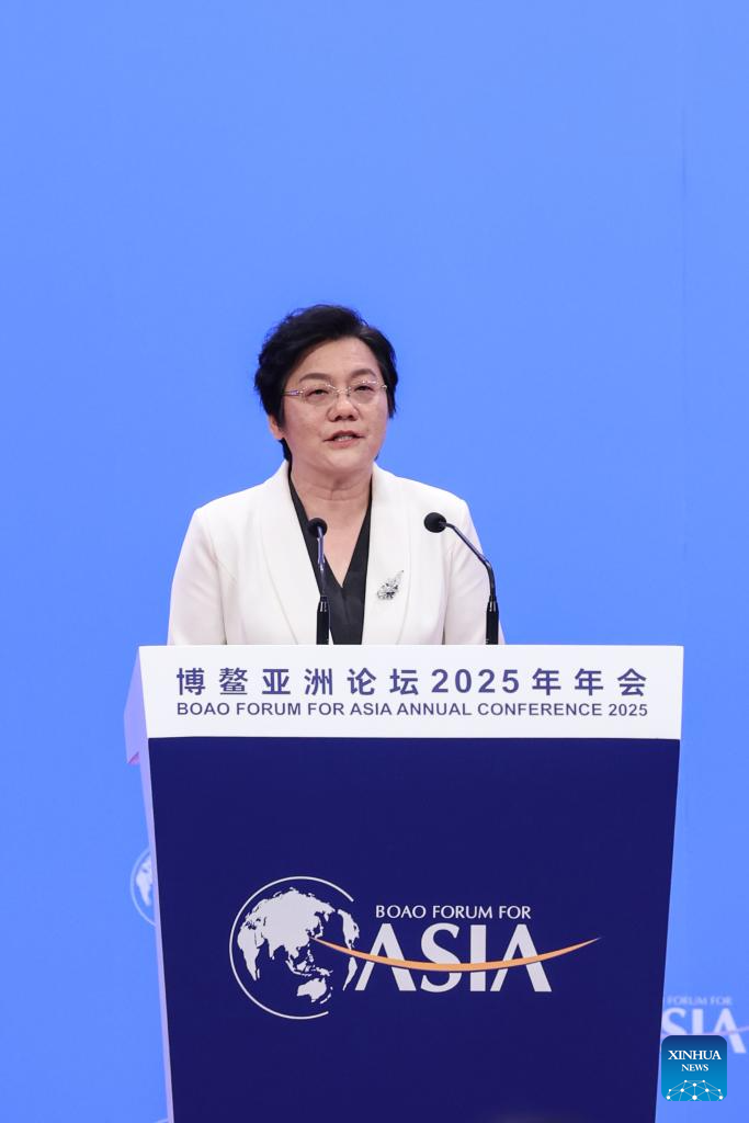 Xie Jing, vice governor of Hainan Provincial People's Government, speaks at a panel discussion themed on "Global Free Trade Port Development" during the Boao Forum for Asia (BFA) Annual Conference 2025 in Boao, south China's Hainan Province, March 25, 2025. (Xinhua/Zhang Liyun)