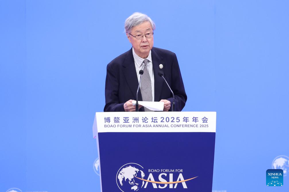 Zhou Xiaochuan, vice chairman of the Boao Forum for Asia (BFA) and China's chief representative to the Boao Forum, delivers a speech at a panel discussion themed on "Global Free Trade Port Development" during the BFA Annual Conference 2025 in Boao, south China's Hainan Province, March 25, 2025. (Xinhua/Zhang Liyun)