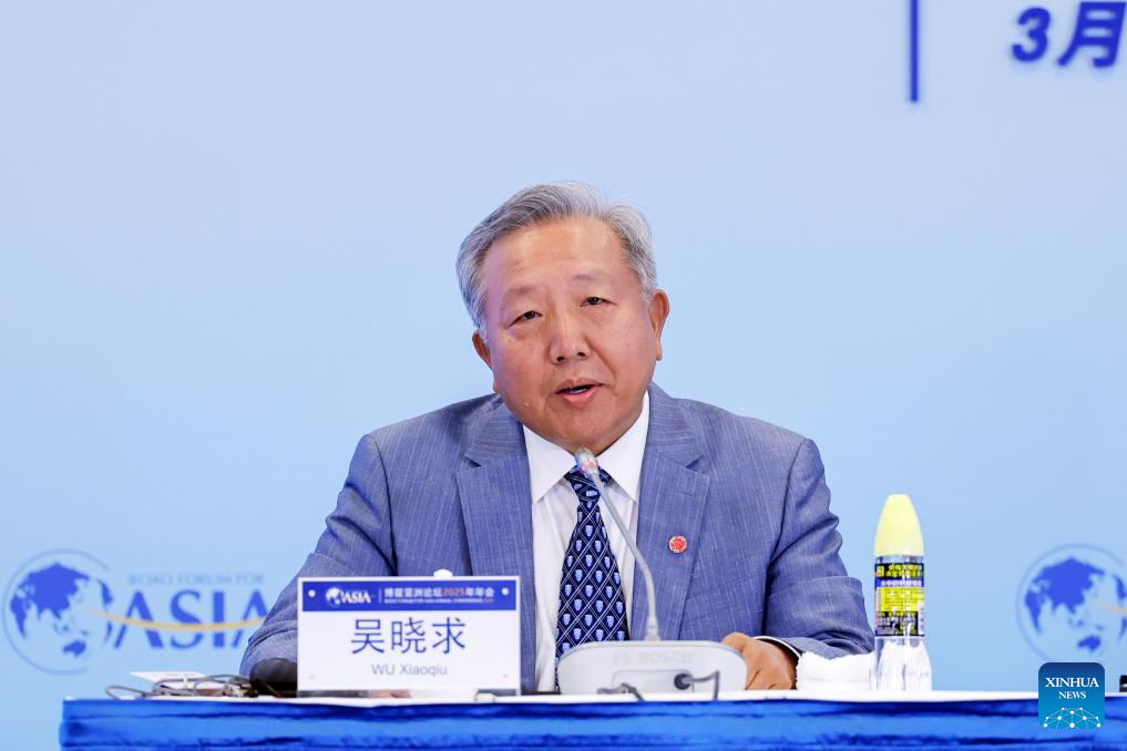 Wu Xiaoqiu, president of China Capital Market Research Institute and dean of the National Finance Research Institute of Renmin University of China, speaks at a high-level dialogue themed "China's Reform and Economic Prospect" during the Boao Forum for Asia (BFA) Annual Conference 2025 in Boao, south China's Hainan Province on March 25, 2025. (Xinhua/Du Xiaoyi)