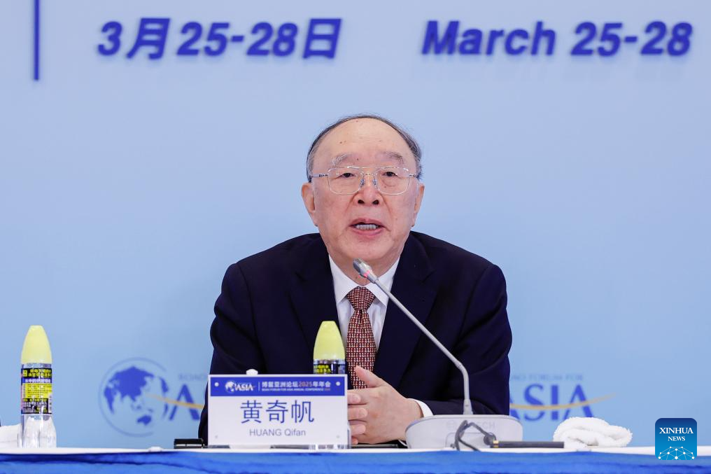 Huang Qifan, academic advisor of the China Finance 40 Forum, speaks at a high-level dialogue themed "China's Reform and Economic Prospect" during the Boao Forum for Asia (BFA) Annual Conference 2025 in Boao, south China's Hainan Province on March 25, 2025. (Xinhua/Du Xiaoyi)
