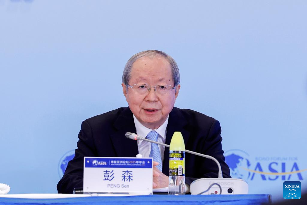 Peng Sen, president of the China Society of Economic Reform, speaks at a high-level dialogue themed "China's Reform and Economic Prospect" during the Boao Forum for Asia (BFA) Annual Conference 2025 in Boao, south China's Hainan Province on March 25, 2025. (Xinhua/Du Xiaoyi)