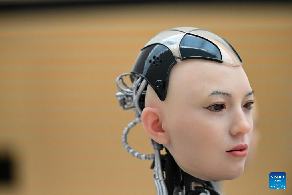 Journalists take photos of a humanoid robot developed by CASBOT at the media center of the 2025 Zhongguancun Forum (ZGC Forum) in Beijing, capital of China, March 26, 2025. The 2025 ZGC Forum is scheduled to be held in Beijing from March 27 to 31.