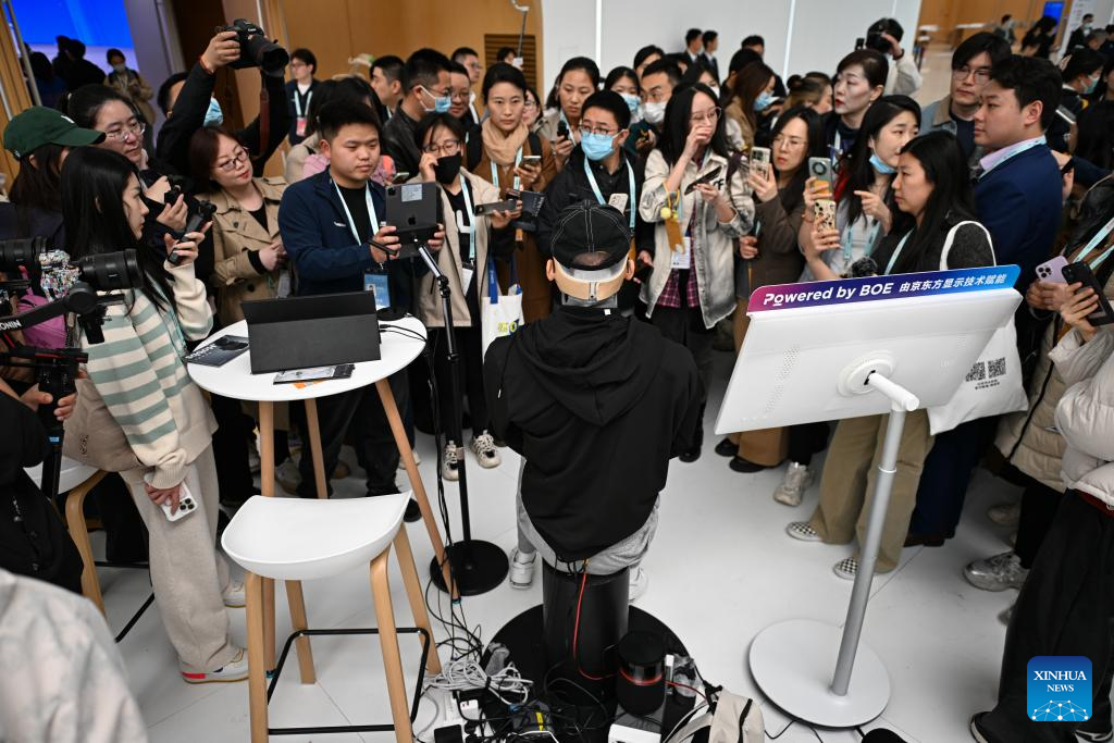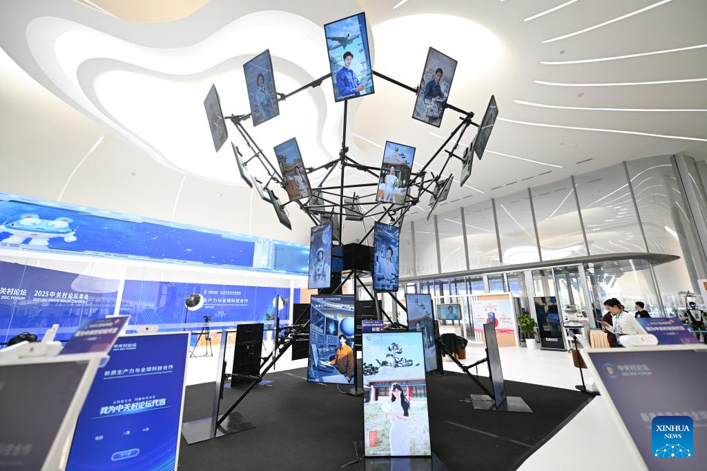 An AIGC interactive installation is pictured at Zhongguancun International Innovation Center, venue for the 2025 Zhongguancun Forum (ZGC Forum), in Beijing, capital of China, March 26, 2025. The 2025 ZGC Forum is scheduled to be held in Beijing from March 27 to 31.