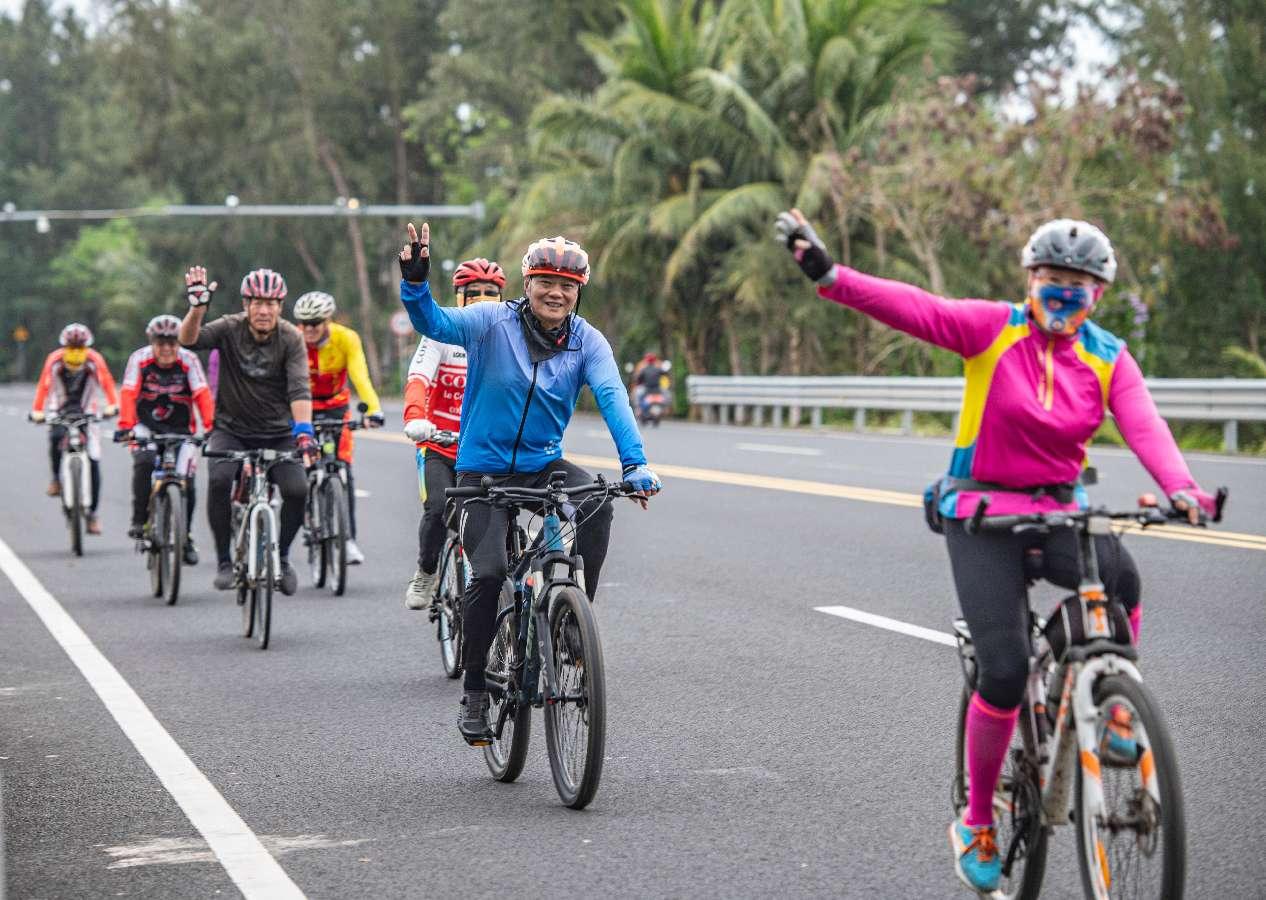 Riders travel along a picturesque tourism highway in Tanmen town, Qionghai, south China's Hainan province. (People's Daily Online/Meng Zhongde)