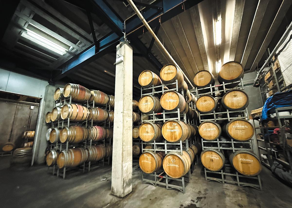 Oak barrel wine storage tanks in the winemaking room of Hungerford Hill winery. (Xin Xin/China Daily)