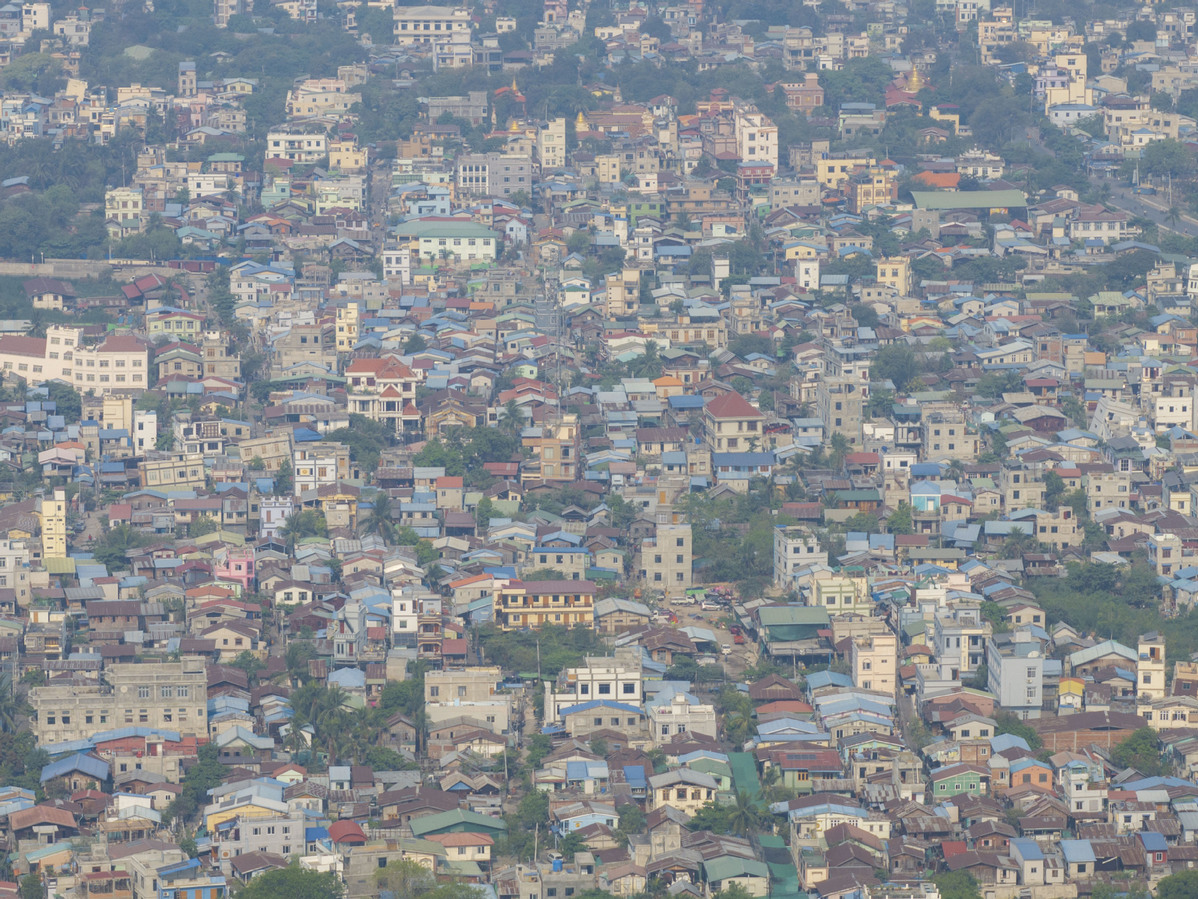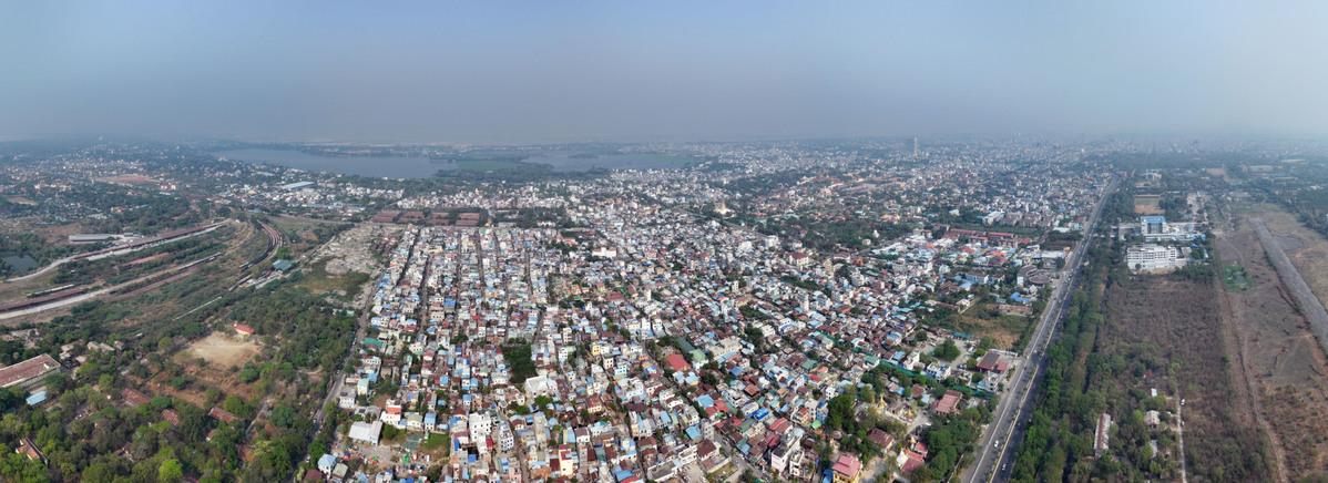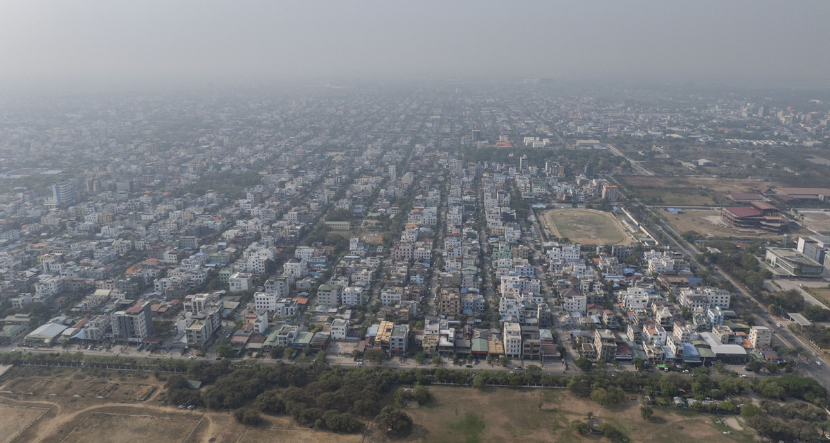 An aerial drone photo taken on March 31, 2025 shows the city view after a 7.9-magnitude earthquake in Mandalay, Myanmar. (Photo/Xinhua)