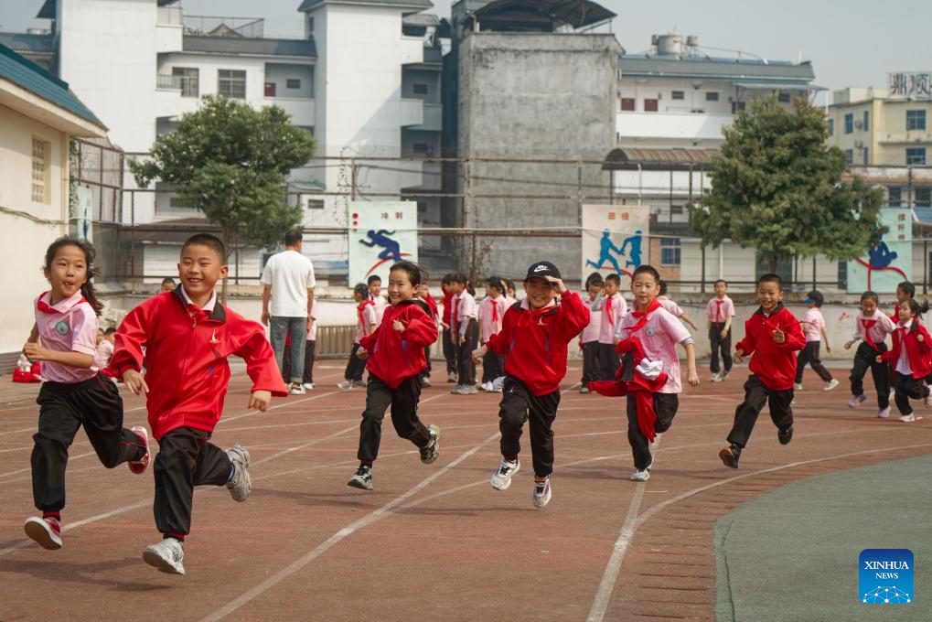Pupils run on the playground at a primary school in Ruili, southwest China's Yunnan Province, March 31, 2025. (Xinhua/Gao Yongwei)