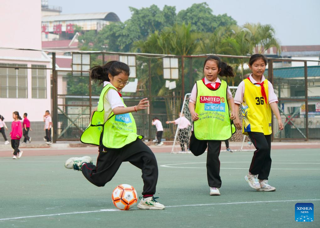 Pupils play football on the playground at a primary school in Ruili, southwest China's Yunnan Province, March 31, 2025. (Xinhua/Gao Yongwei)