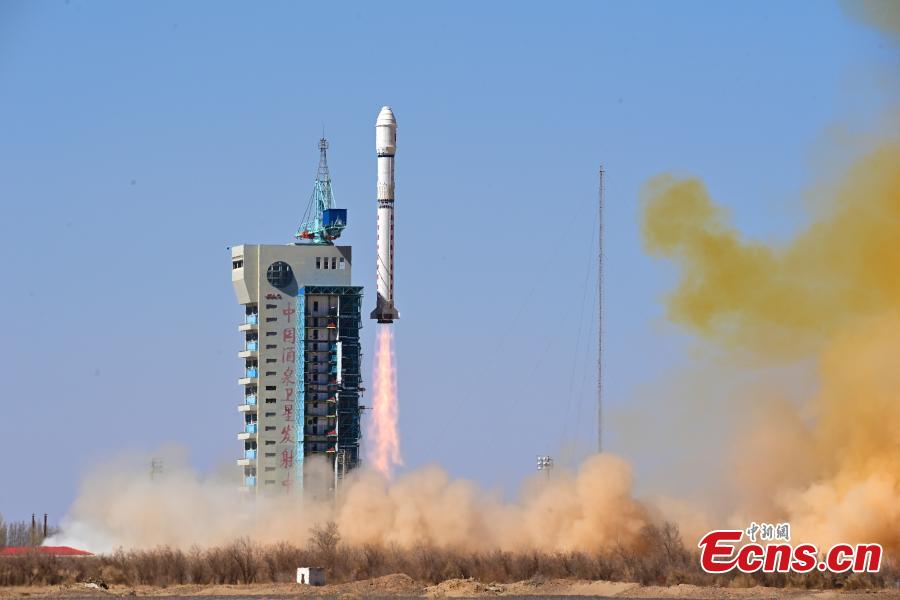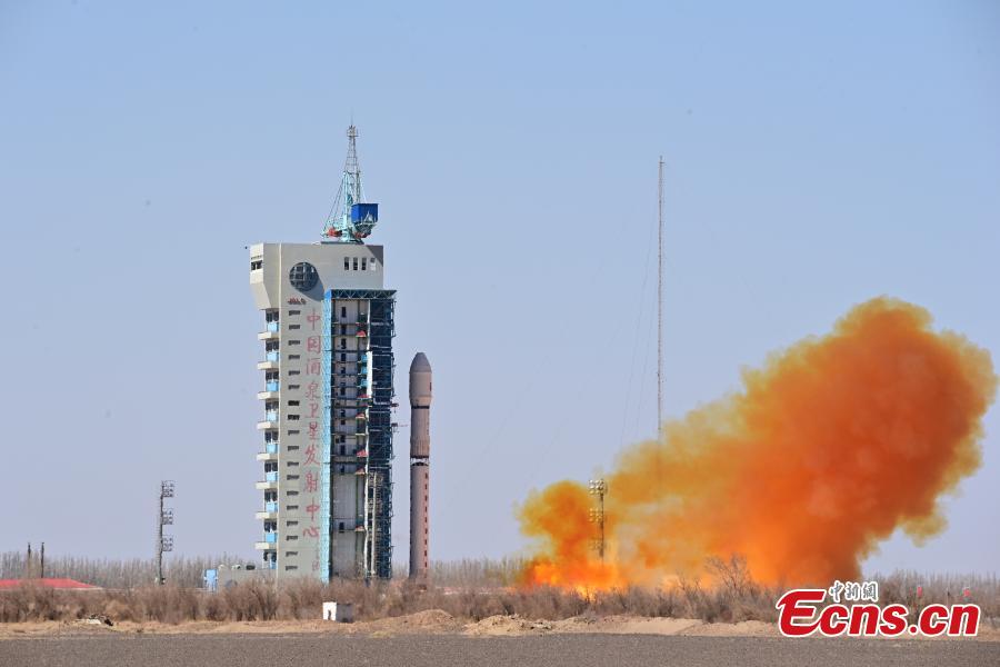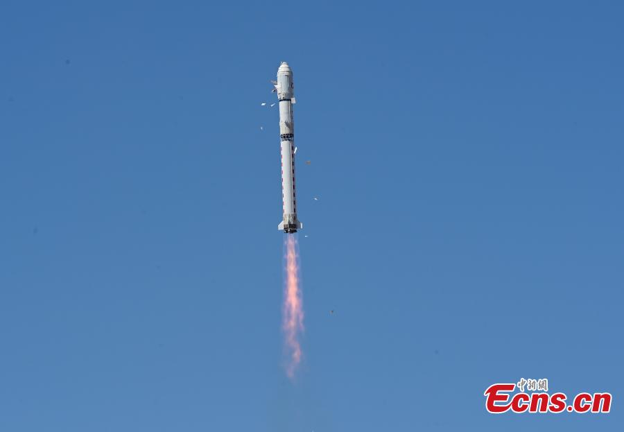 A Long March-2D carrier rocket carrying a test satellite for satellite internet technology blasts off from the Jiuquan Satellite Launch Center in northwest China, April 1, 2025. (China News Service/Wang Jiangbo)