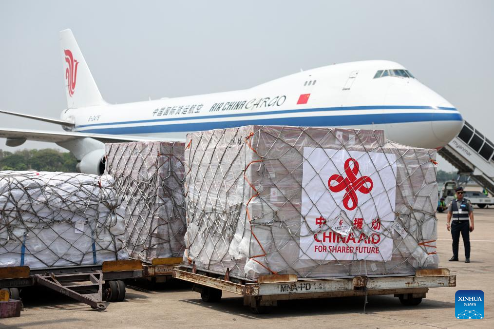 The first batch of emergency humanitarian aid supplies dispatched by the Chinese government for earthquake disaster relief arrived in Myanmar on March 31.