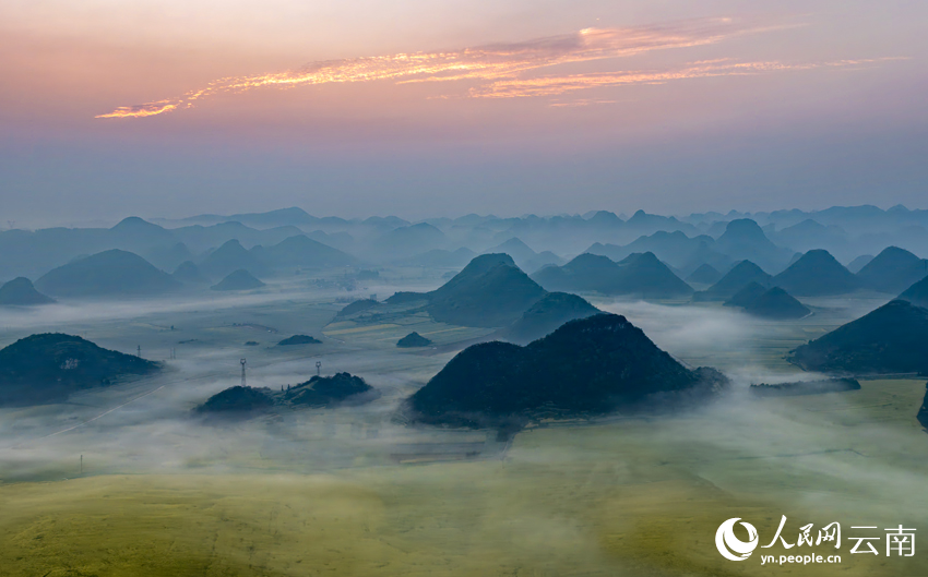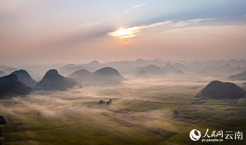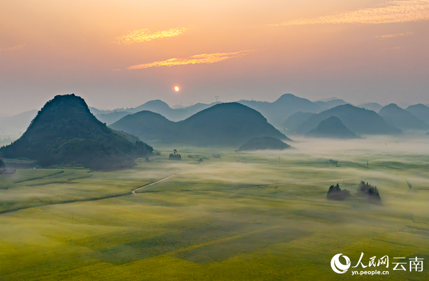 Morning mist envelops rapeseed fields in Luoping county, Qujing city, southwest China's Yunnan Province. (Photo/Zhao Wanbo)
